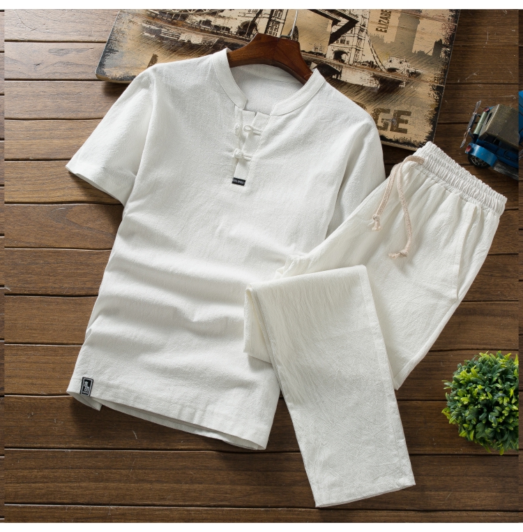 Product: Men's Cotton Linen Short-sleeved T-shirt Shorts Summer Casual Outdoor Sports Set
